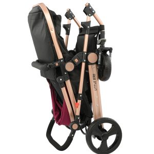Cărucior Litle Bird Red Wine cu suspensii duble, roți pivotante și pliere rapidă. Confort, siguranță și design elegant pentru bebelușul tău.