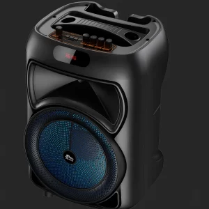 Bullet Points comerciale: ✅ Putere 1000W PMPO ✅ 2 microfoane wireless incluse ✅ Bluetooth, USB, SD, FM, AUX ✅ Baterie reîncărcabilă – 6 ore autonomie ✅ Afișaj digital + telecomandă ✅ Design tip troler – roți și mâner retractabil ✅ Ideală pentru karaoke, petreceri și evenimente
