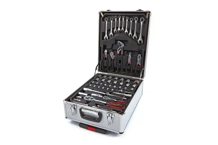 Fabricată din oțel crom-vanadiu (Cr-V) ultra-rezistent 💥, trusa include o gamă completă de chei tubulare, inelare, clichet, biți, prelungitoare și accesorii esențiale pentru reparații auto 🚗, lucrări industriale ⚙️ sau activități casnice 🏠.