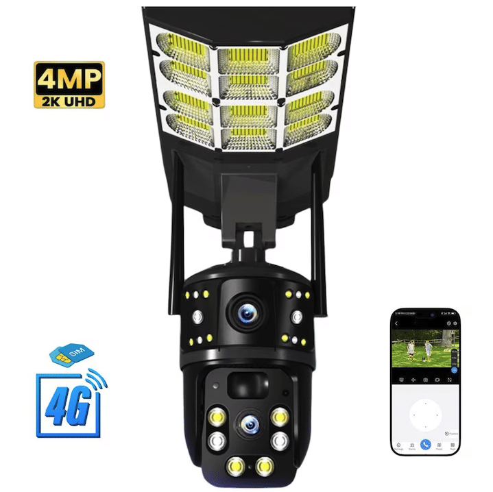 Această cameră solară 4G Dual Lens PTZ îți oferă siguranță totală fără cabluri, fără prize și fără facturi.