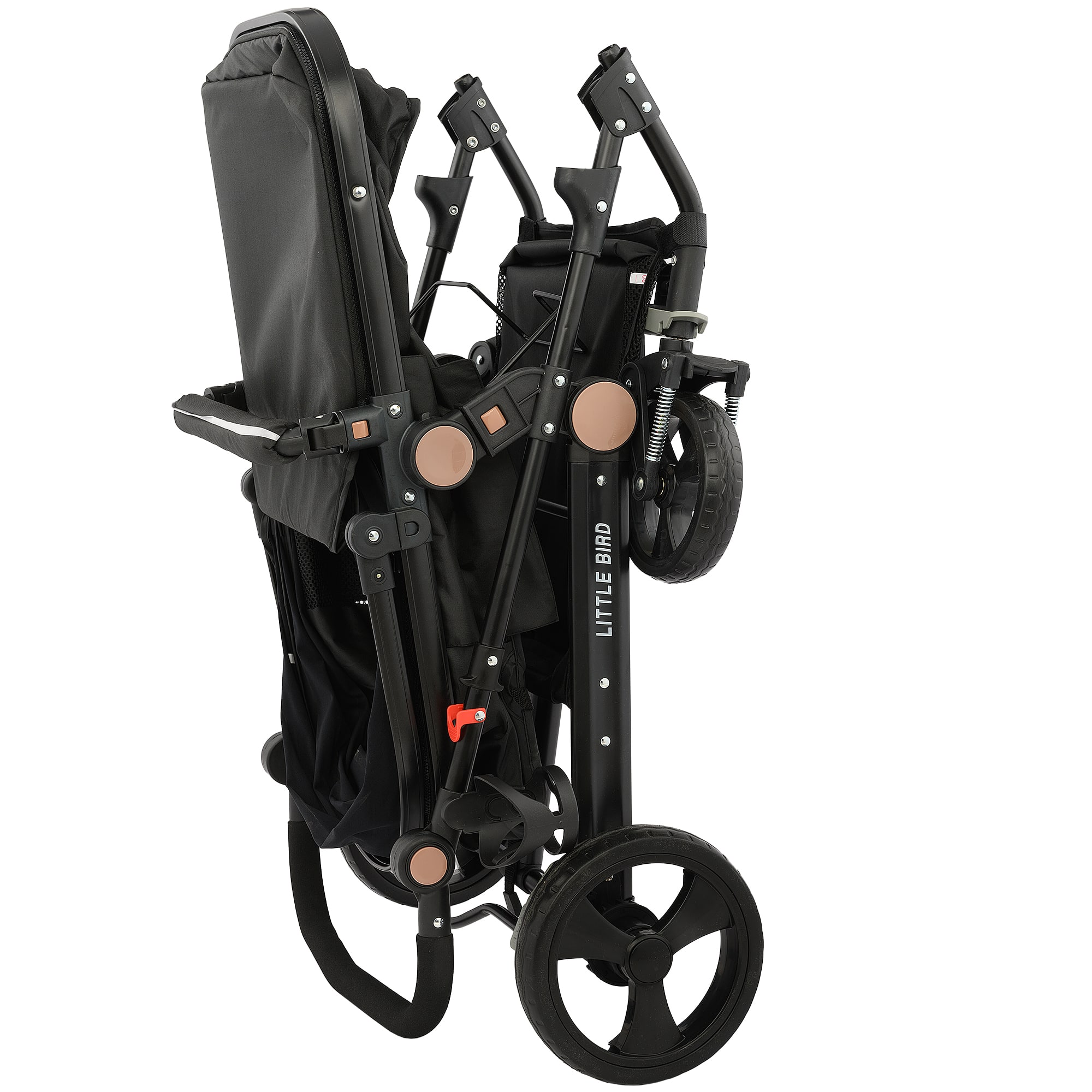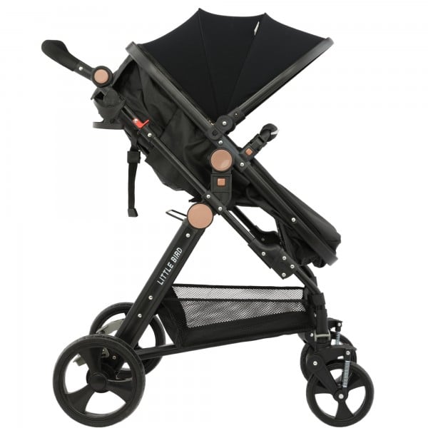 Carucior 2 in 1 Litle Bird cu suspensii duble, pliabil rapid, design premium – negru elegant