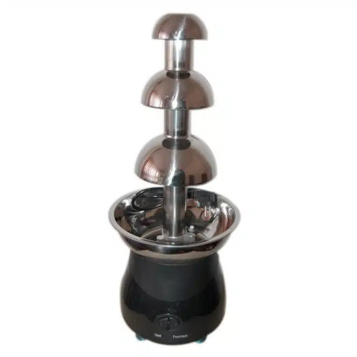 Fântâna de ciocolată cu 3 cascade este alegerea ideală pentru a transforma orice eveniment într-un moment special. Concepută pentru deserturi fondue, această fântână electrică de ciocolată menține ciocolata topită și o distribuie uniform pe cele trei niveluri, creând un efect vizual elegant și apetisant.