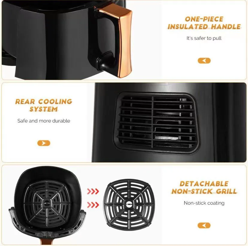 💨 Gătit sănătos și fără mirosuri – elimină până la 90% din grăsimea alimentelor, păstrând gustul crocant.