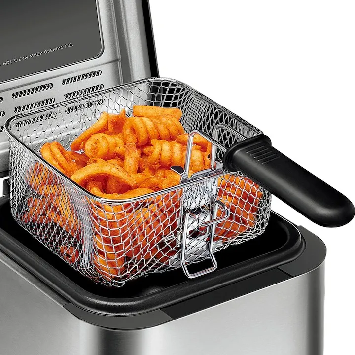Carcasa din oțel inoxidabil argintiu oferă un aspect modern și o durabilitate excelentă, iar termostatul reglabil îți permite să setezi temperatura ideală pentru fiecare preparat, garantând rezultate crocante la exterior și fragede la interior.