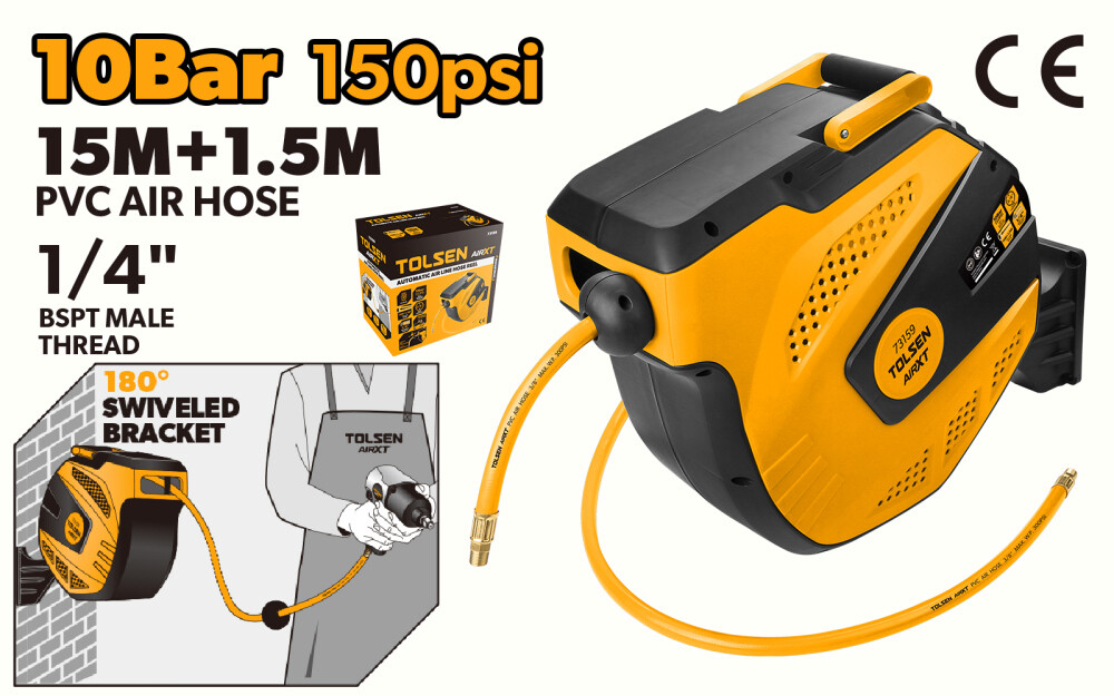 Crește eficiența în atelierul tău cu Furtunul pentru Aer Comprimat cu Rola Automată Tolsen AirXT Industrial, 15,5 metri (model 1930) – o soluție profesională pentru lucrul rapid, sigur și organizat.