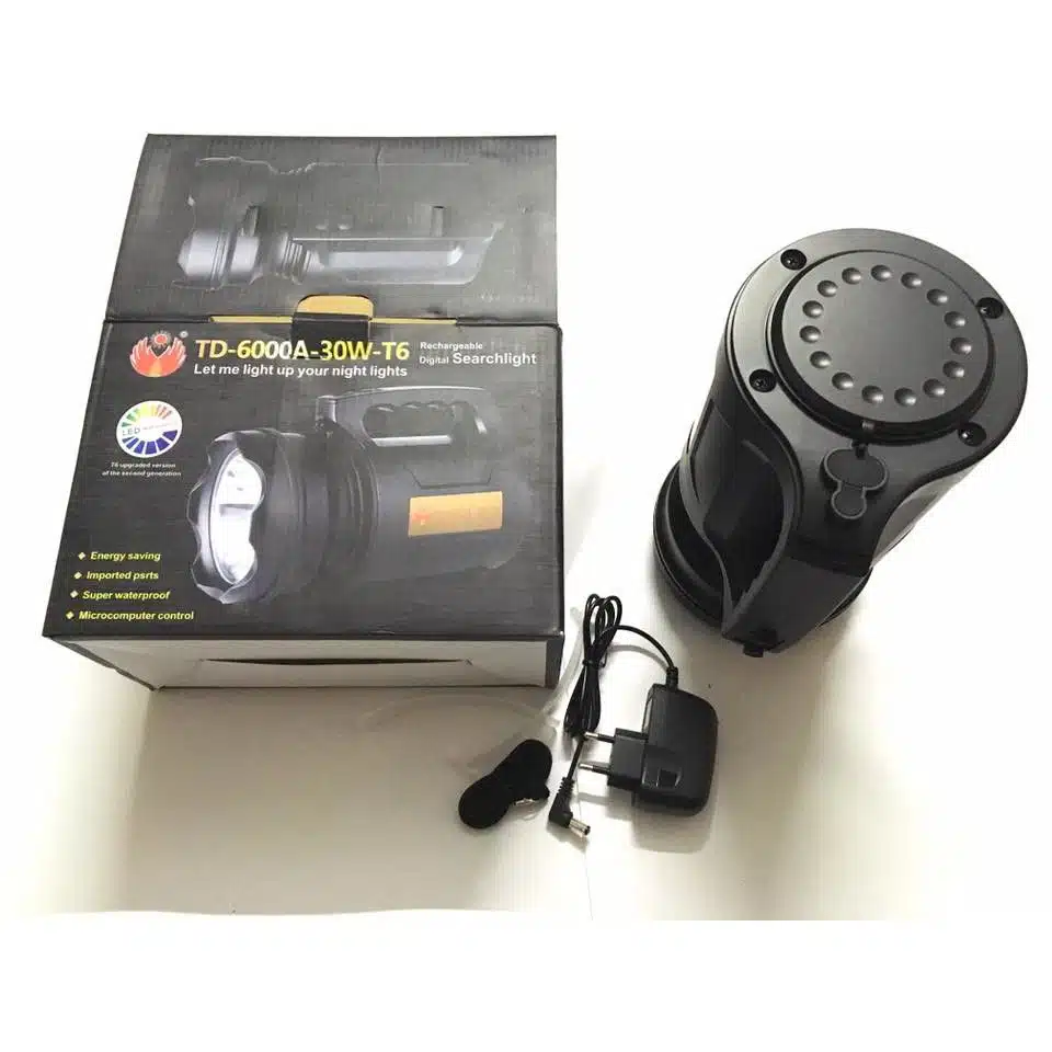 Lanternă Profesională LED T6 30W cu Acumulator Integrat – Lanternă Puternică Reîncărcabilă pentru Exterior, Pescuit și Uz General