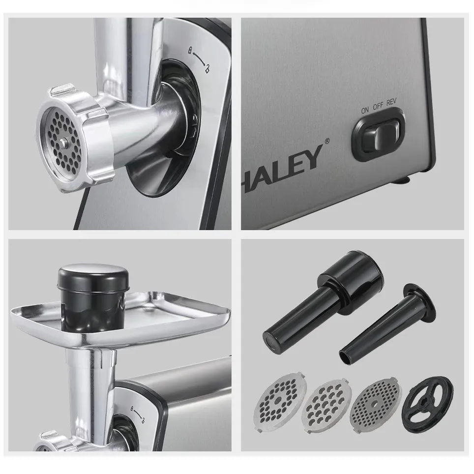 mașină de tocat carne, mașină de tocat Haley, mașină de tocat carne 2600W, mașină electrică pentru carne, tocător de carne, aparat de tocat din inox, mașină profesională de tocat carne, aparat pentru cârnați, electrocasnice Haley, tocător electric, cutter inox, aparat de bucătărie puternic, aparat pentru gătit carne de casă