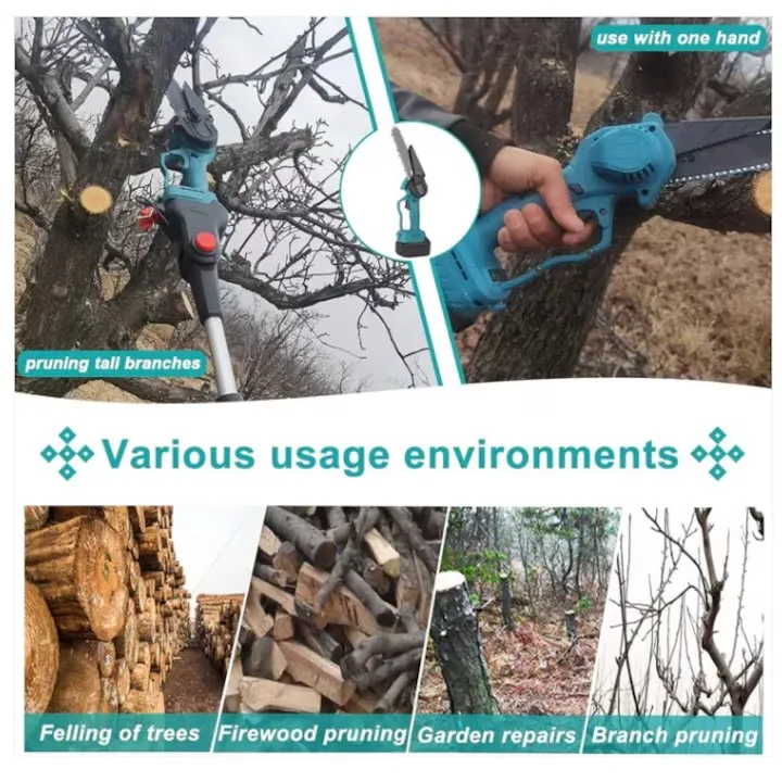 Mini Drujbă 36V 3Ah – Fierăstrău Electric cu 2 Acumulatori, Braț Telescopic 2–3 m și Unghi Reglabil pentru Tăieri Precise
