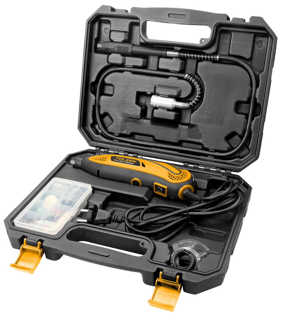 Dacă ai nevoie de o unealtă versatilă pentru proiecte de bricolaj, modelism, reparații fine sau gravură, mini polizorul Tolsen FX Force Xpress 135W (79555) este alegerea ideală. Conceput pentru utilizatori care vor precizie și control, acest mini tool vine într-un pachet complet cu 108 accesorii, astfel încât îl poți folosi imediat pentru tăiere, șlefuire, polizare, curățare, gravare sau finisare detaliată.