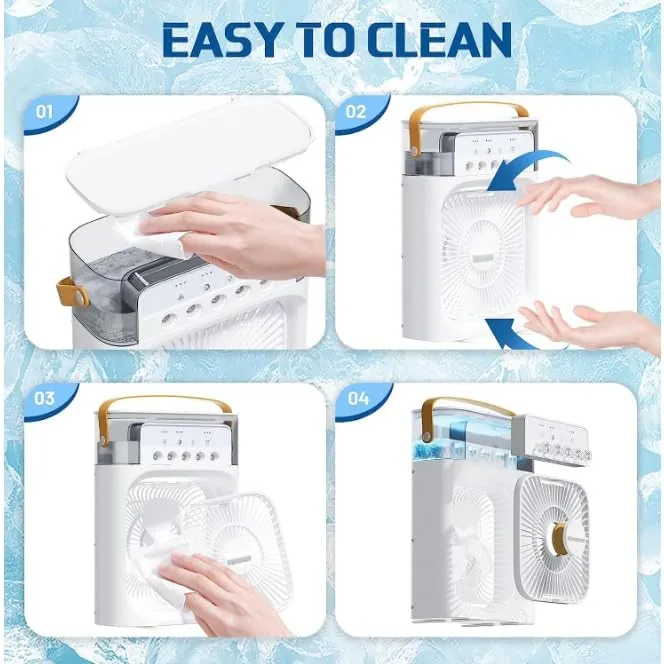 Transformă atmosfera din orice încăpere într-un colț răcoros și relaxant cu Mini Răcitorul de Aer Portabil AT Performance 4 în 1, perfect pentru vară, birou, dormitor sau camping.