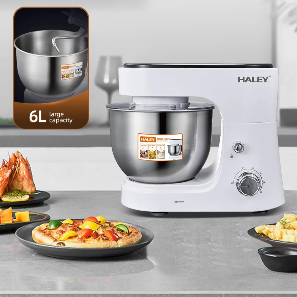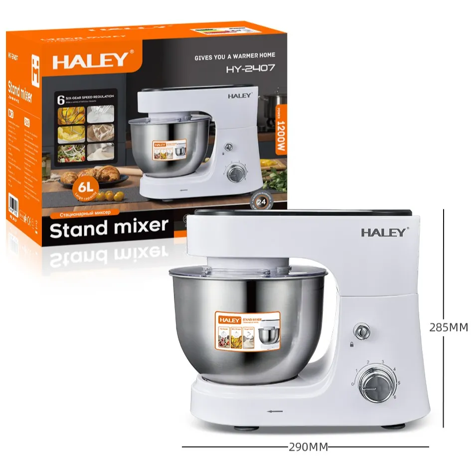 mixer profesional, mixer Haley 1200W, mixer cu bol din inox 6L, mixer de bucătărie profesional, robot de bucătărie Haley, mixer 6 viteze, mixer cu funcție Pulse, mixer silențios, aparat pentru prăjituri, mixer pentru cozonaci, mixer pentru patiserie, electrocasnice Haley, mixer puternic și durabil