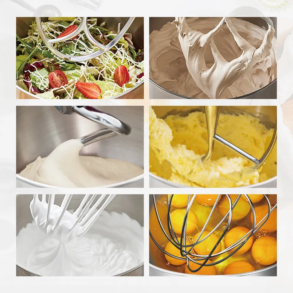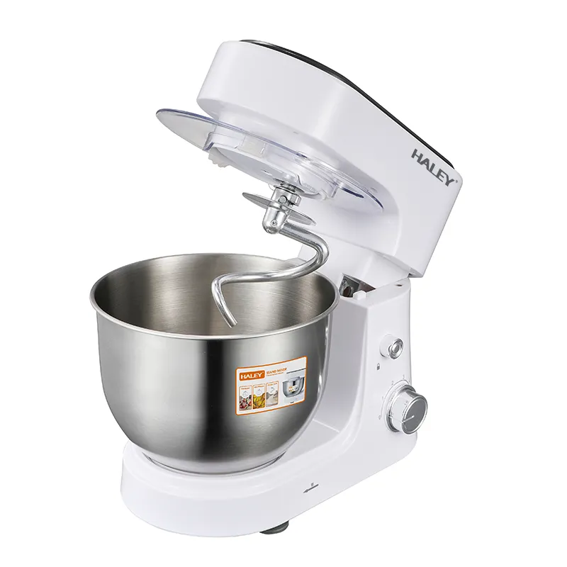 Pregătește deserturi perfecte și aluaturi ca un adevărat chef cu Mixerul Profesional Haley HY-2409 – 1200W, echipat cu bol generos din inox de 6 litri, 6 trepte de viteză și funcție Pulse pentru control total asupra texturii ingredientelor 🍰🥐.