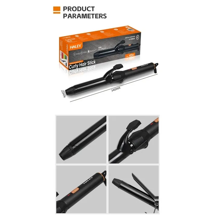 Ondulatorul Haley HY-3505 are un design modern și rafinat, combinând nuanțele de negru lucios și argintiu cu accente fine metalice.
