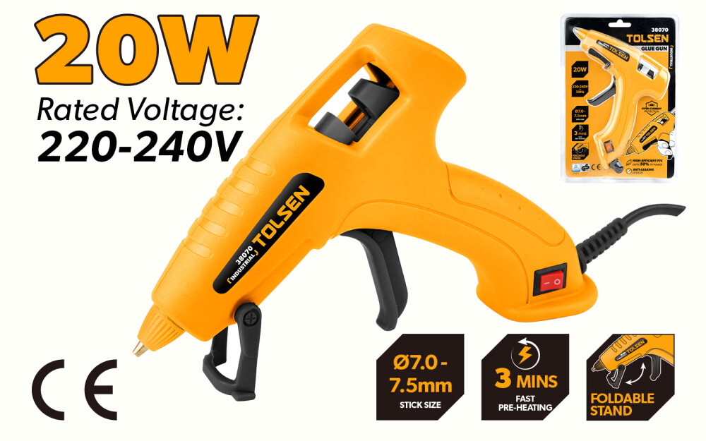 Pistol de lipit cu adeziv 20W pentru batoane 7–7,5 mm – încălzire rapidă și precizie în lucru