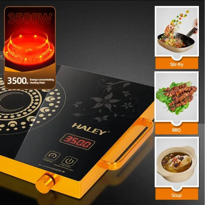 Datorită tehnologiei ceramice cu infraroșu, plita Haley HY-1821A distribuie căldura uniform, reducând timpul de preparare și consumul de energie. Este potrivită pentru toate tipurile de vase – din inox, fontă, sticlă termorezistentă sau ceramică.