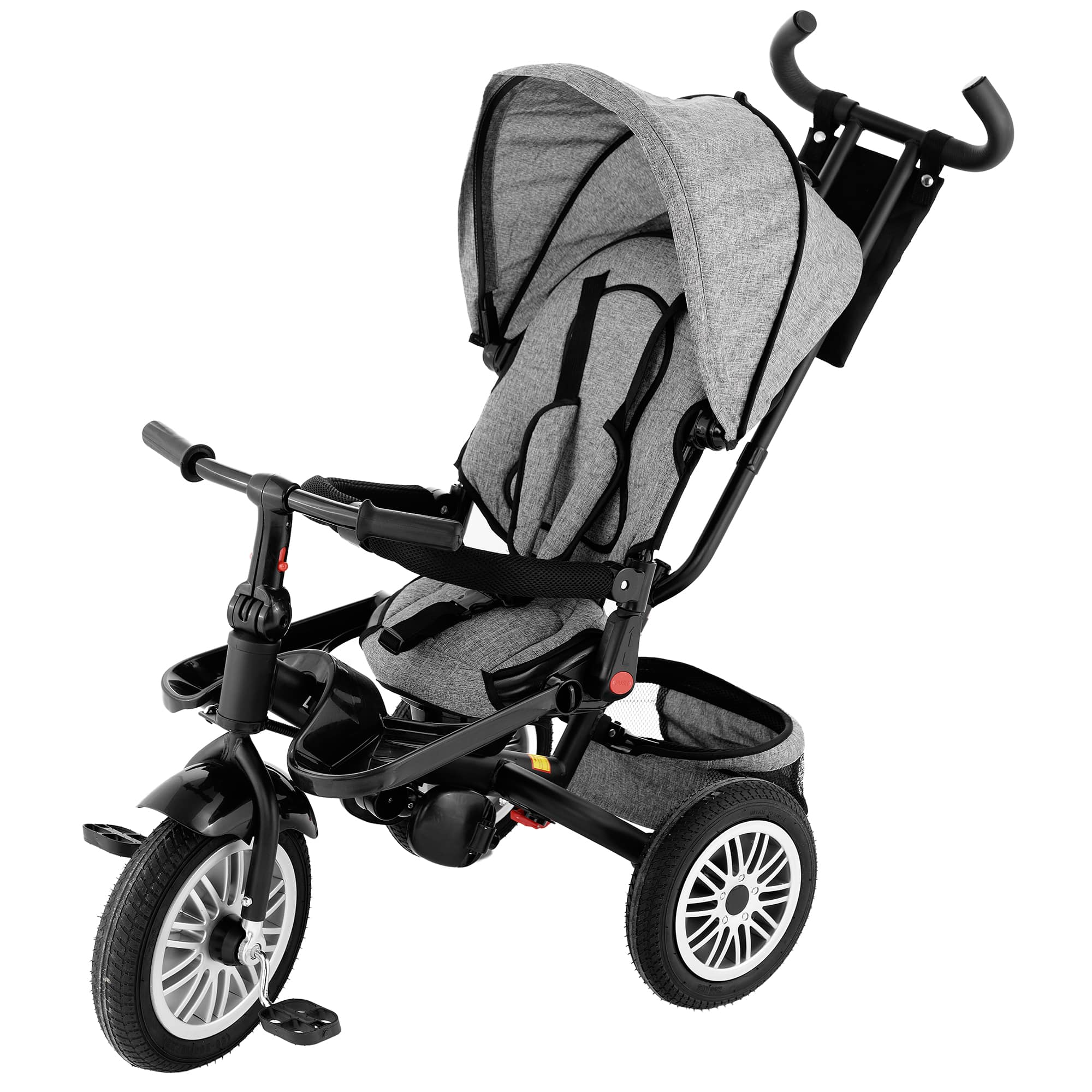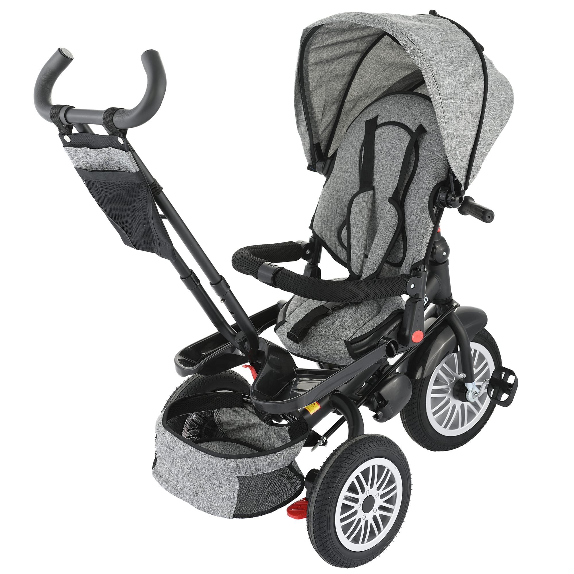 2️⃣ Tricicletă cu scaun rotativ 360° – bebelușul poate fi orientat cu fața către părinte sau către direcția de mers.