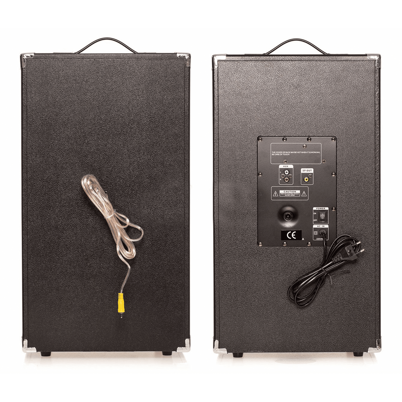 Cele două boxe asigură o putere totală de 600W, oferind volum ridicat și claritate excelentă chiar și în spații mari.