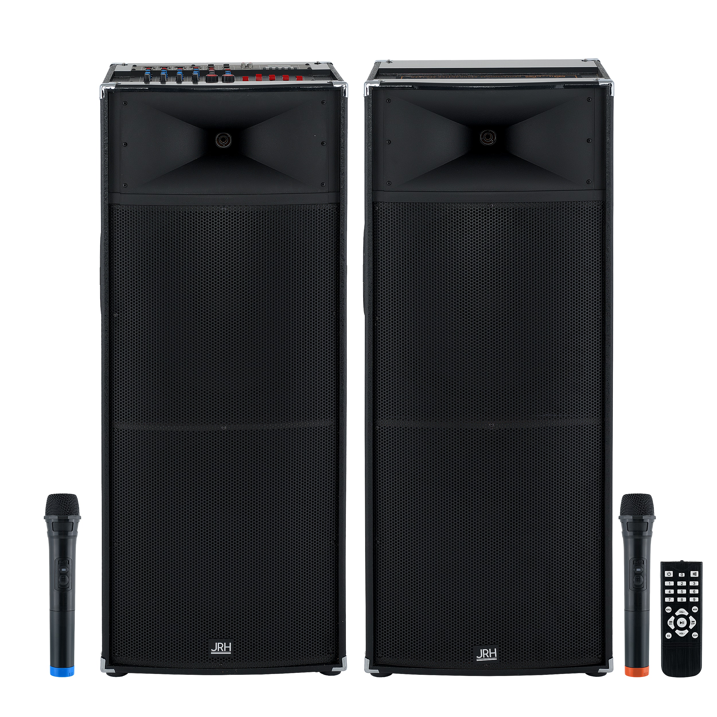 Set Boxe Profesionale JRH 2000W – Sunet Puternic, Egalizator 5 Benzi, Microfoane Wireless & Bluetooth