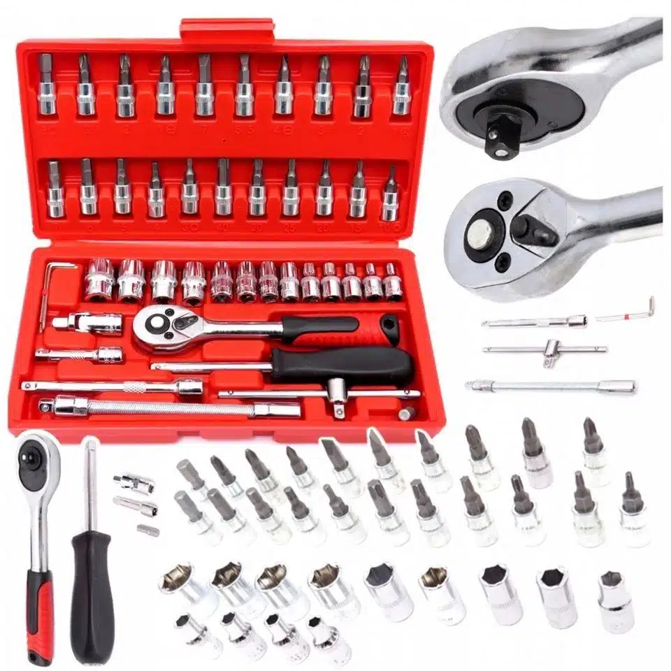 trusă chei tubulare, set chei 1/4, trusă 46 piese, chei tubulare cu clichet, trusă scule profesională, biți Torx Imbus, set scule auto, trusă bricolaj completă