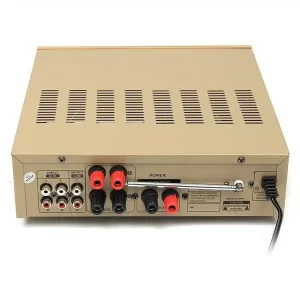 Bullet Points comerciale: ✅ Putere 2x100W – sunet clar și puternic ✅ Bluetooth, USB, SD, FM și AUX ✅ EQ reglabil + efect ECHO ✅ Telecomandă inclusă ✅ Alimentare 220V / 12V ✅ Compatibil cu boxe pasive ✅ Ideal pentru karaoke și petreceri
